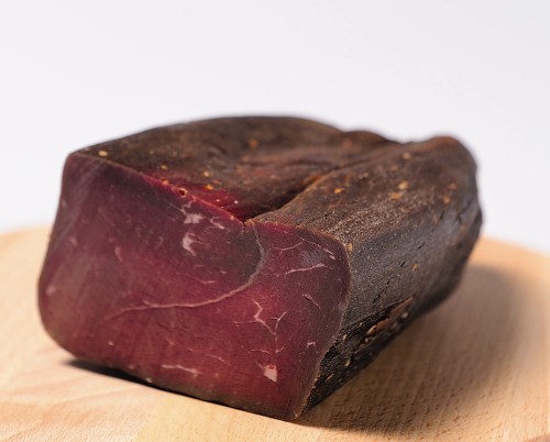 Mostbröckli Rind Zutaten: Rindfleisch, Nitritpöckelsalz (Kochsalz, Konservierungsmittel E250), Gewürze und Kräuter (Pfeffer, Knoblauch, Koriander, Nelken, Basilikum, Lorbeer), Glukose, Antioxidationsmittel: E300, E301, Dextrose, Kali-Salpeter E 252.